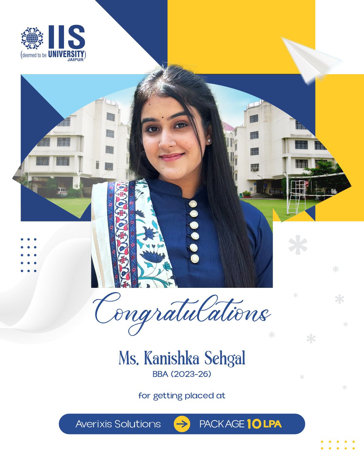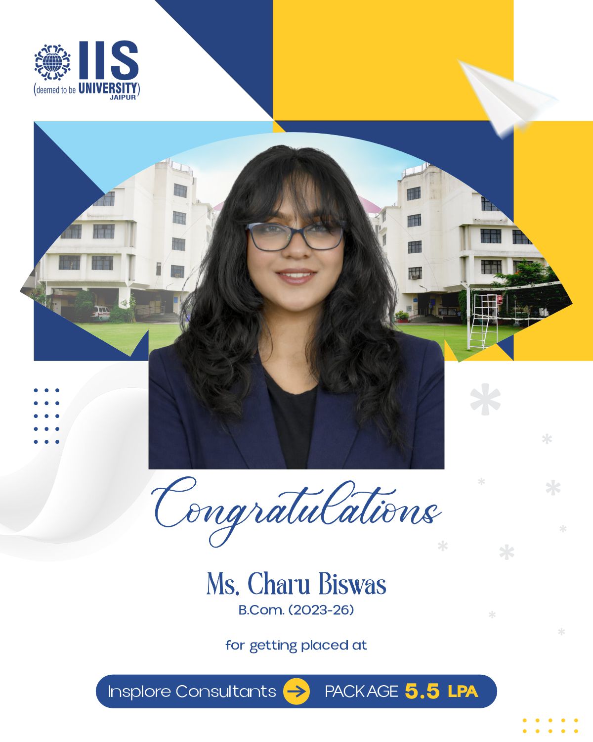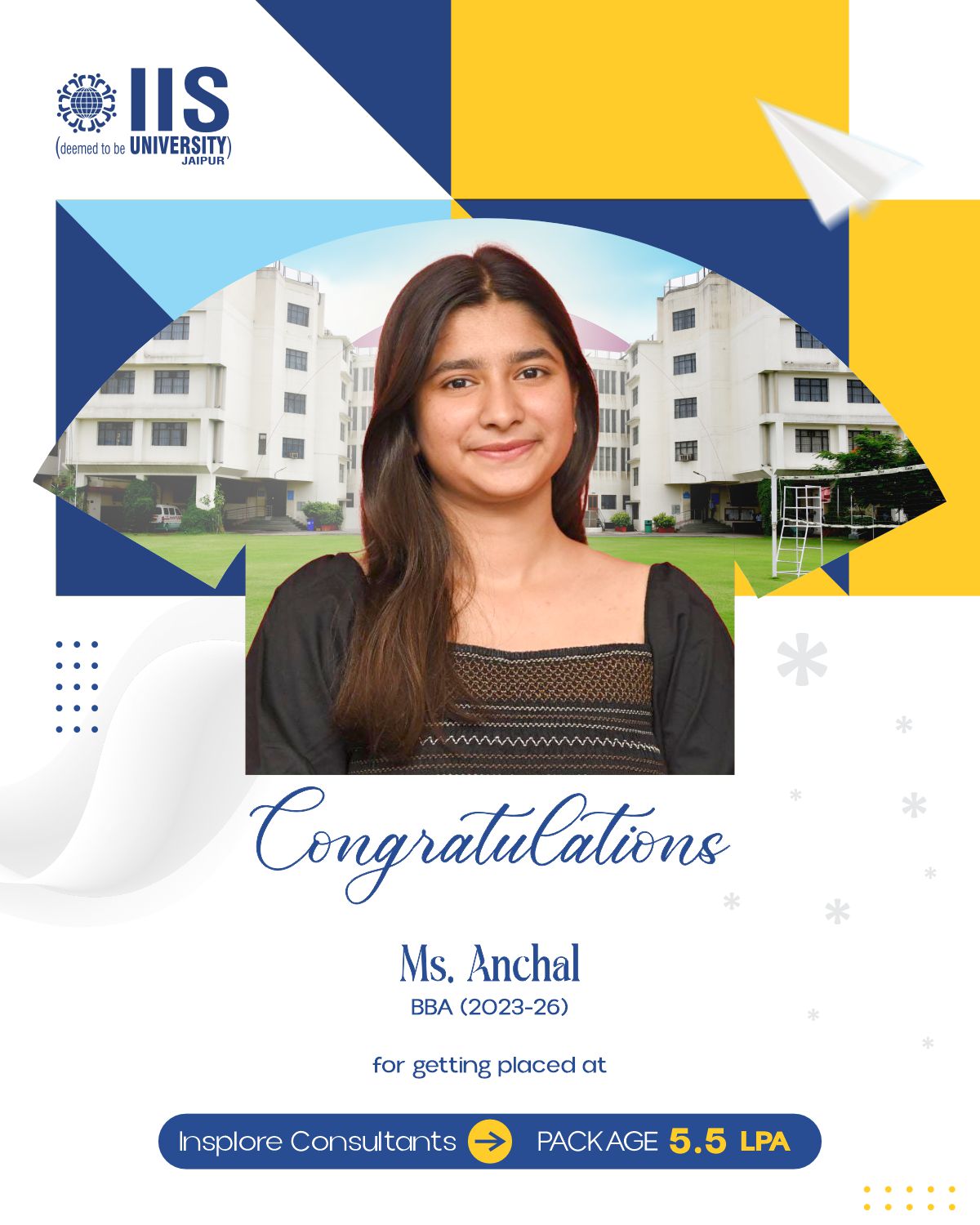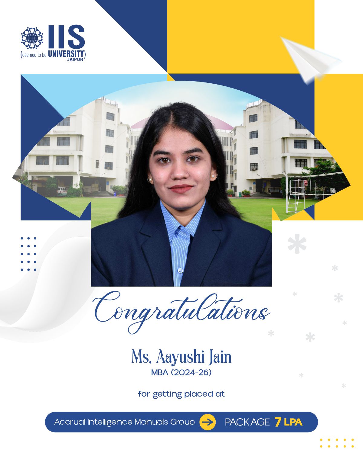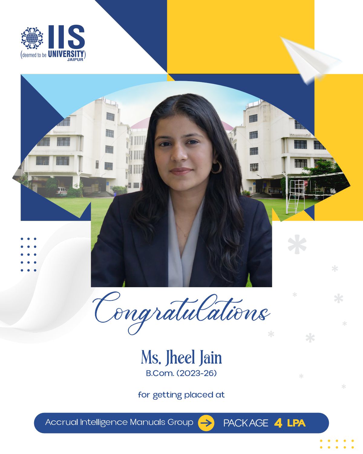 IIS Deemed to be University claims to provide placement opportunities of up to ₹38 LPA for students enrolled in professional courses.