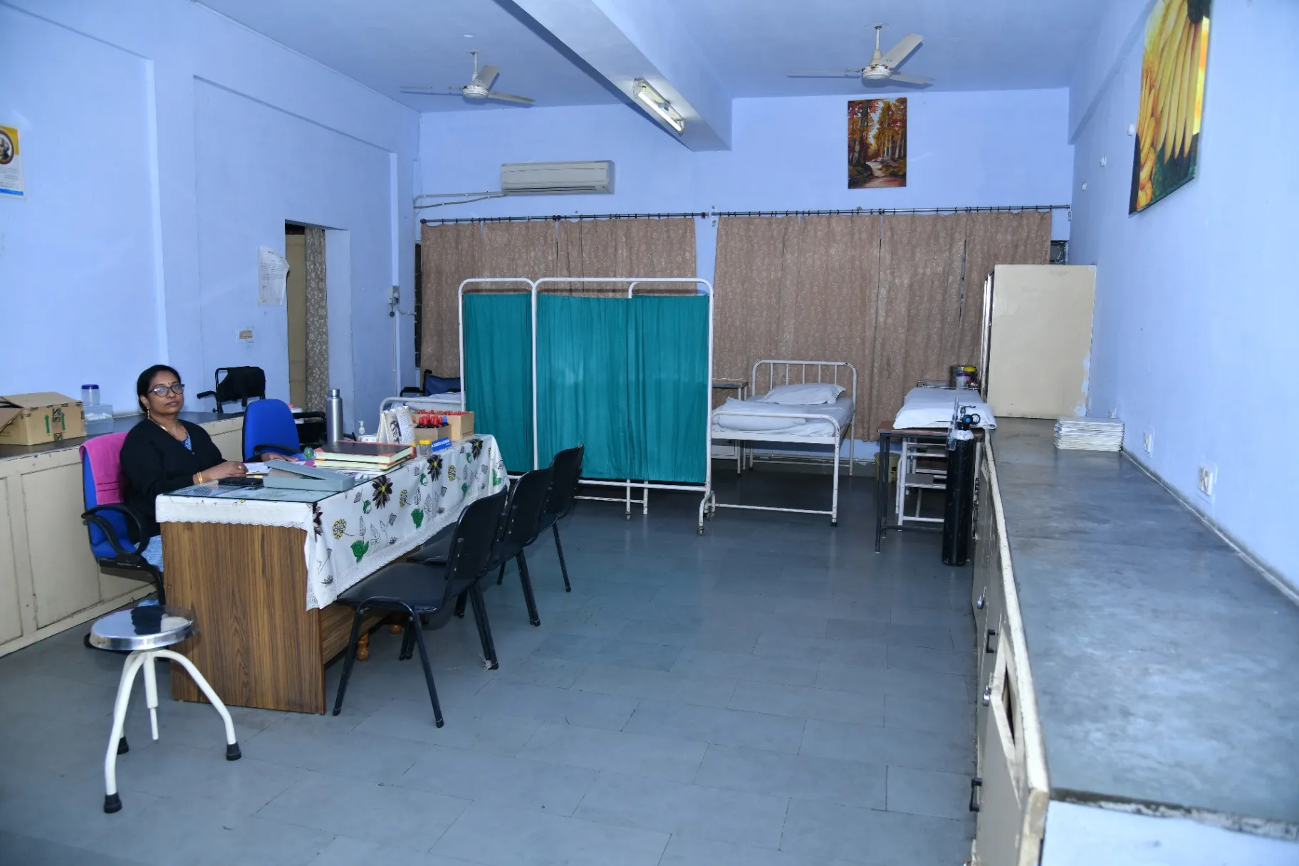 Equipped with beds, nurse station, and first-aid facilities. Ambulance and MoU with nearby hospitals ensure full medical support.