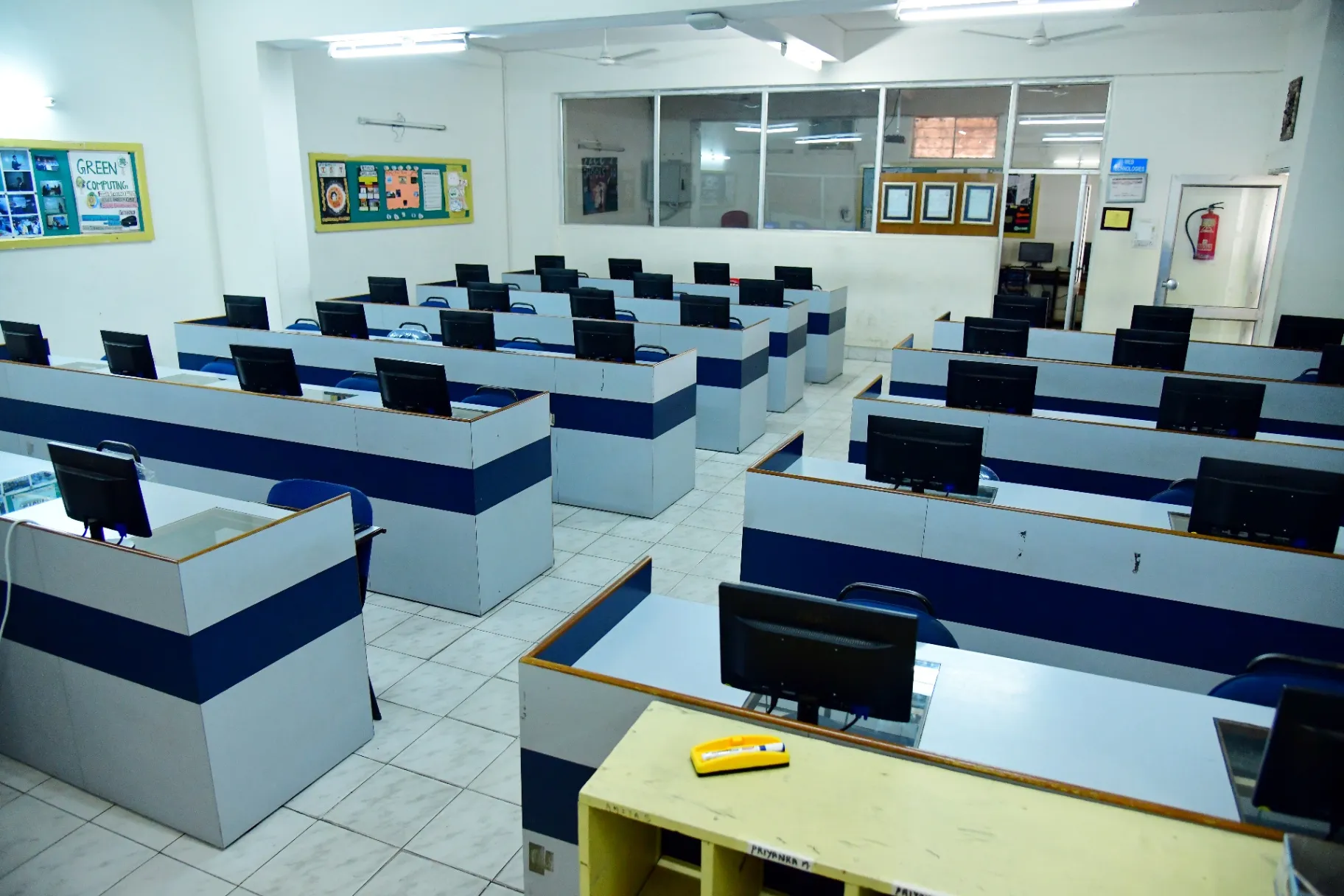 Wi-Fi and LAN enabled campus with NKN lease line 1 Gbps connectivity and 360 Mbps internet. 595 computers and laptops are centrally connected for student enrolment, attendance, feedback, and results.