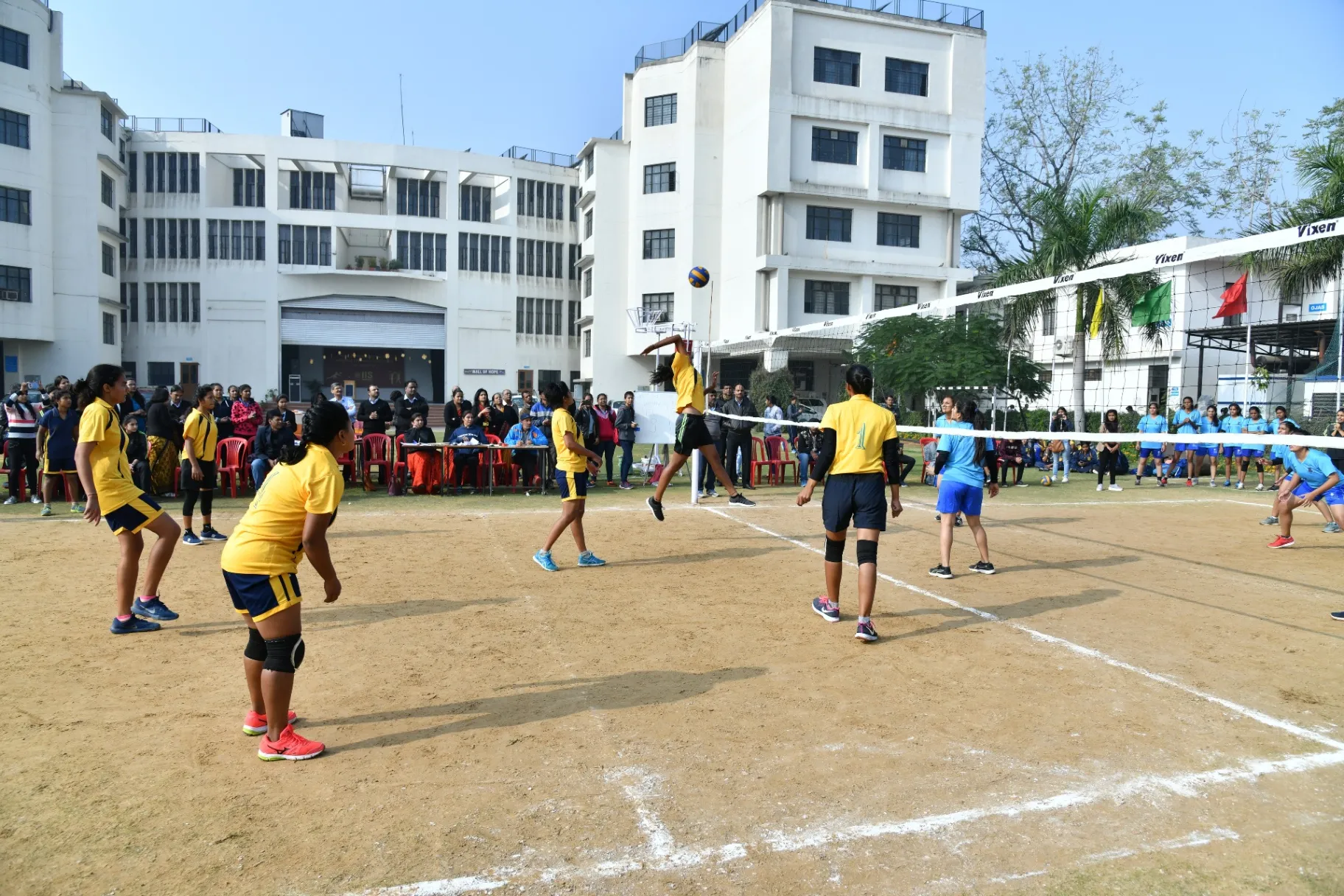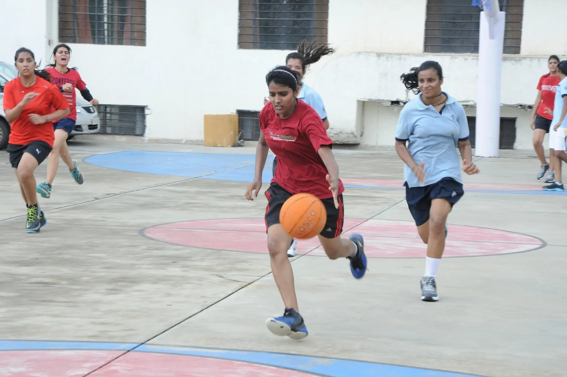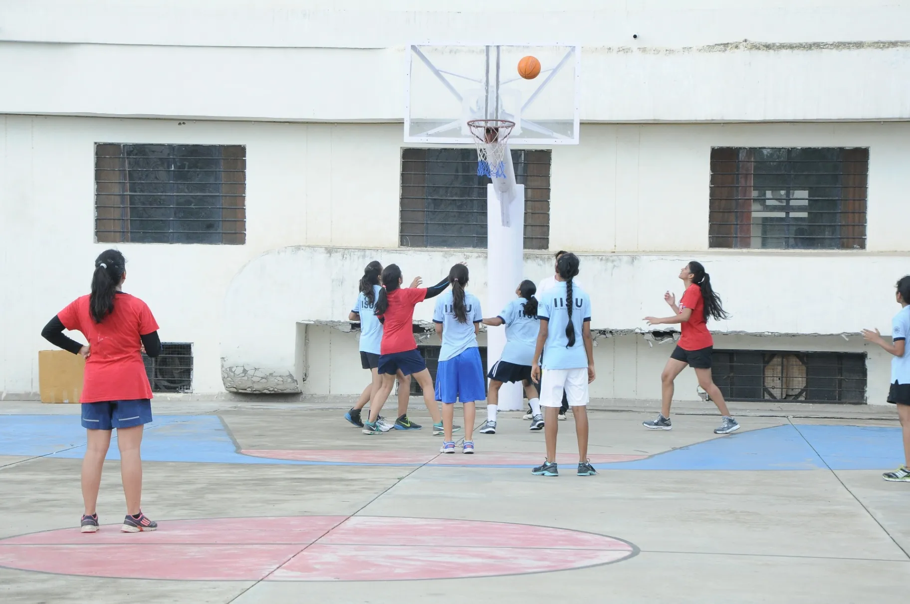 Expansive, secure outdoor grounds featuring courts for Basketball, Handball, and Volleyball to encourage team spirit and fitness.