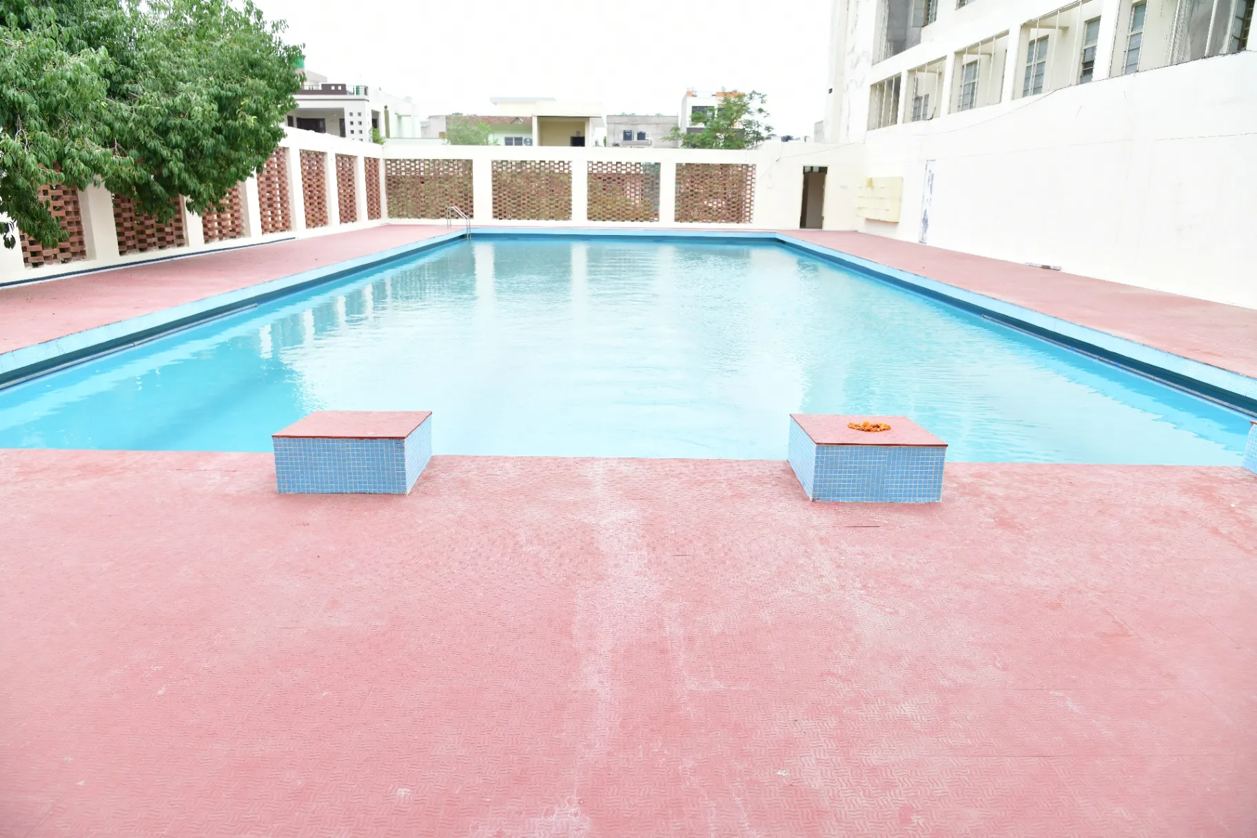 An open-air swimming pool at the Mahaveer Marg Campus used for intra- and inter-university events, encouraging aquatic sports and endurance.