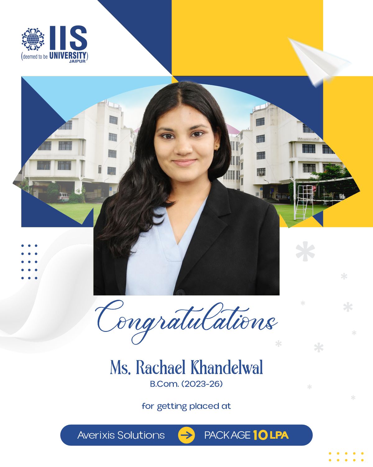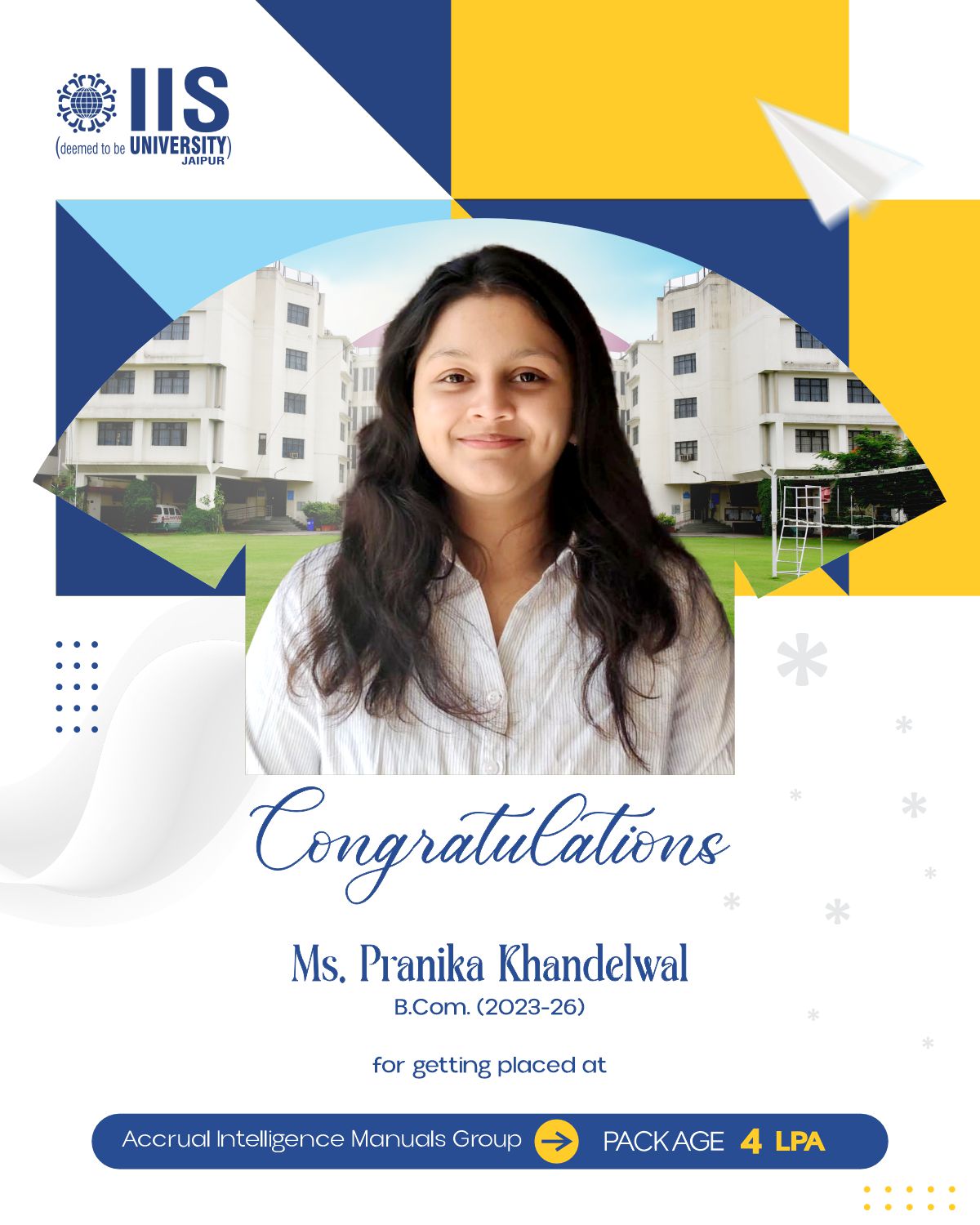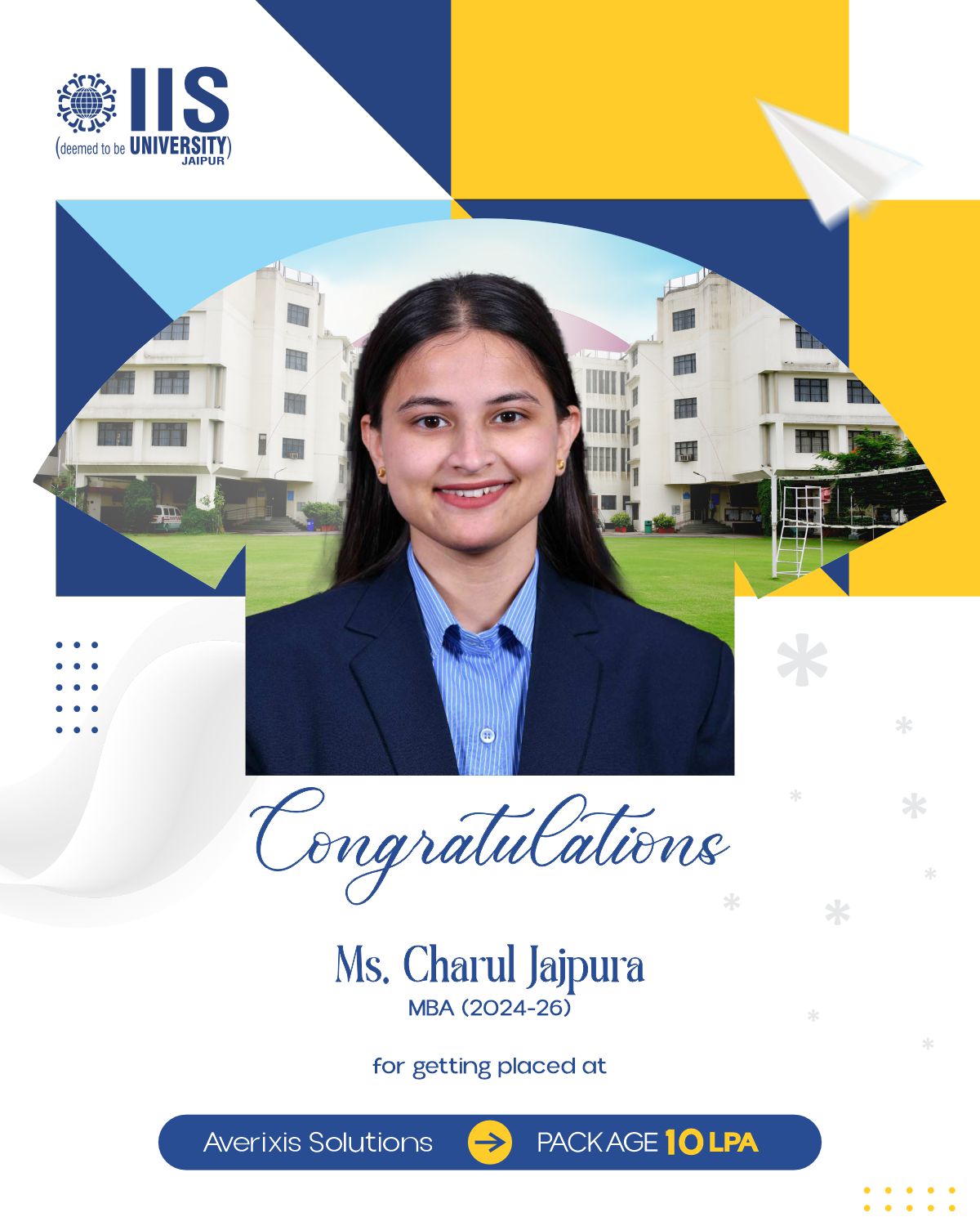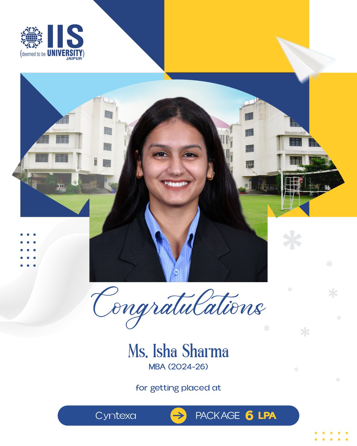 IIS Deemed to be University claims to provide placement opportunities of up to ₹38 LPA for students enrolled in professional courses.